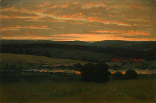 Here is Coffin’s original work. The sunset here is breath-taking. The orange glow being reflected in the pond feature below. The distant hills blurred so you can imagine the smoke from fireplaces settling down in the valleys.