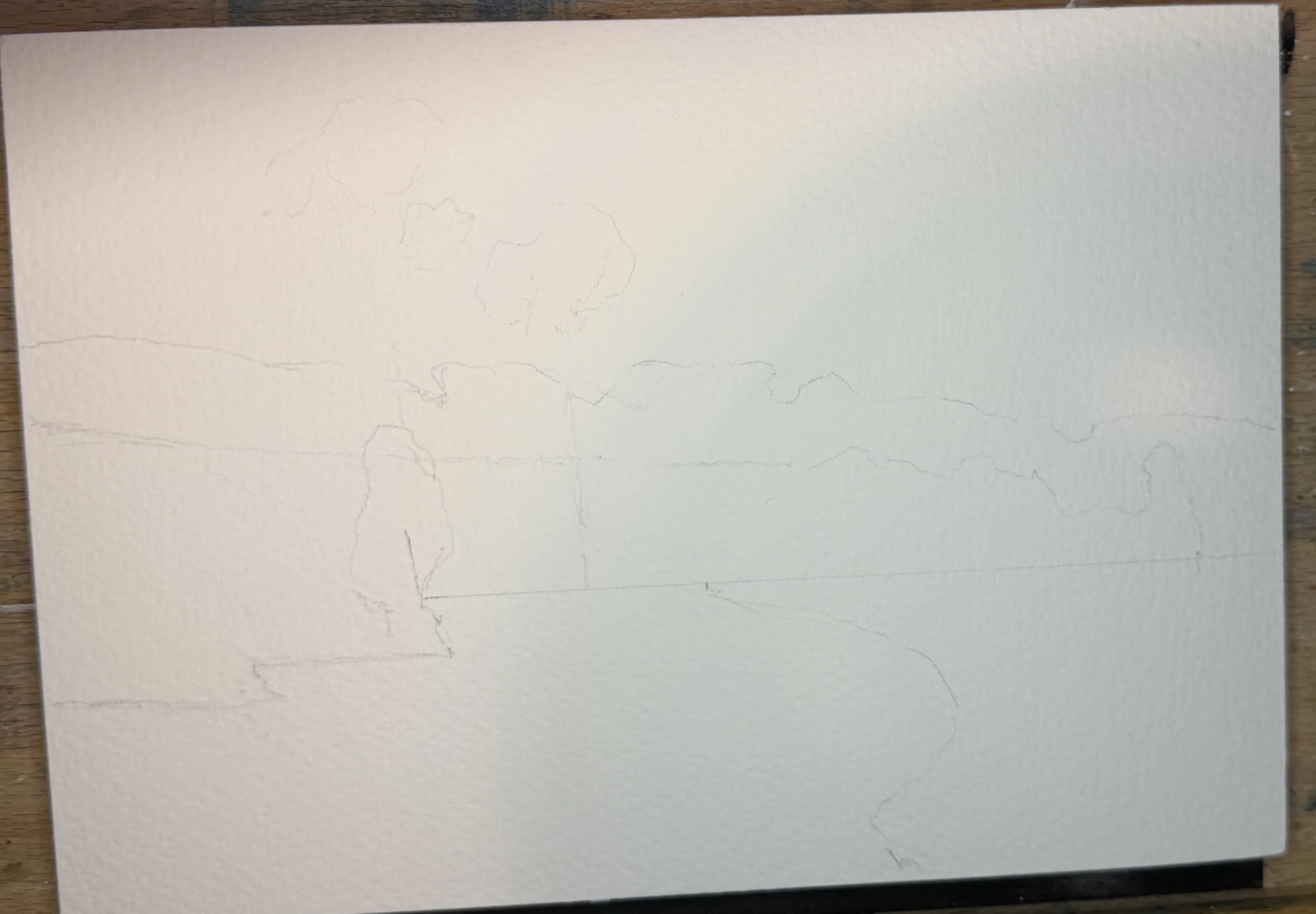Firstly, we get a little sketch going. Remember, I am not copying these painting but doing this exercise to learn from them. So if my, or your, sketch is not exact don’t stress about it. This is not what it is all about.
